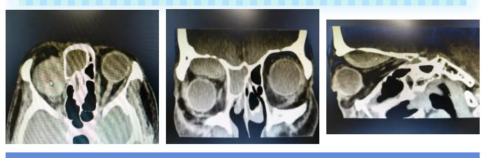 结合急诊眼眶CT检查,刘奶奶右侧眼球突出,眼眶上部存在混杂密度影,性质难辨(血肿/占位?),同时合并全副鼻窦炎,复杂病情直指右眼眶内肿物压迫——这不仅解释了眼球固定的根源,更预示着若不及时干预,视力将面临不可逆的毁灭性打击。