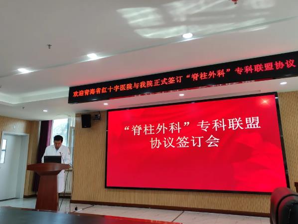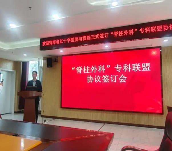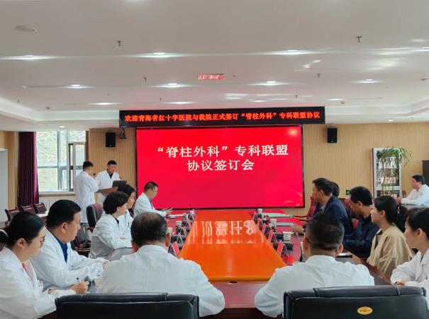为积极响应“健康中国”战略,推动优质医疗资源下沉,提升基层脊柱疾病防治能力,9月24日上午,青海红十字医院与大通县人民医院举办“青海省脊柱外科专科联盟”签约仪式。青海红十字医院副院长阿尖措、脊柱外科主任医师李占银、副主任医师赵洪顺、护理人员及医疗联合体服务部人员参加会议。此次专科联盟建设旨在依托青海红十字医院脊柱外科的省级重点专科医疗团队和技术优势,通过医疗资源下沉、技术合作及人才培养,为当地群众提供优质、高效的医疗服务。