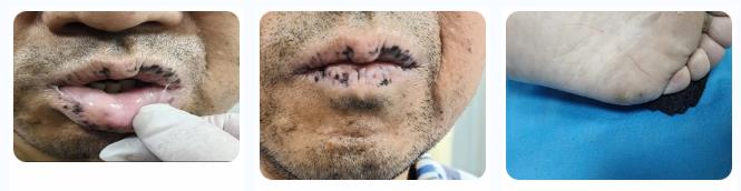 蓝色橡皮疱痣综合征是一种先天性血管畸形综合征,主要特征是皮肤和胃肠道出现多发性毛细血管畸形,发病率仅为1:14000,迄今国内外报道约300余例。该病男女发病比例接近1:1,没有明显的性别差异。目前病因还不明确,多数呈散发性,但也有研究显示与9号染色体基因突变相关。皮肤上的病变通常呈现为蓝色或紫色的橡皮样丘疹或结节,这些皮损看起来就像一个个小小的“血泡”,因此,得名“蓝色橡皮疱痣”,而在胃肠道内,也会有类似的血管畸形存在,它们可能会导致反复的出血,从而引发一系列消化道症状。