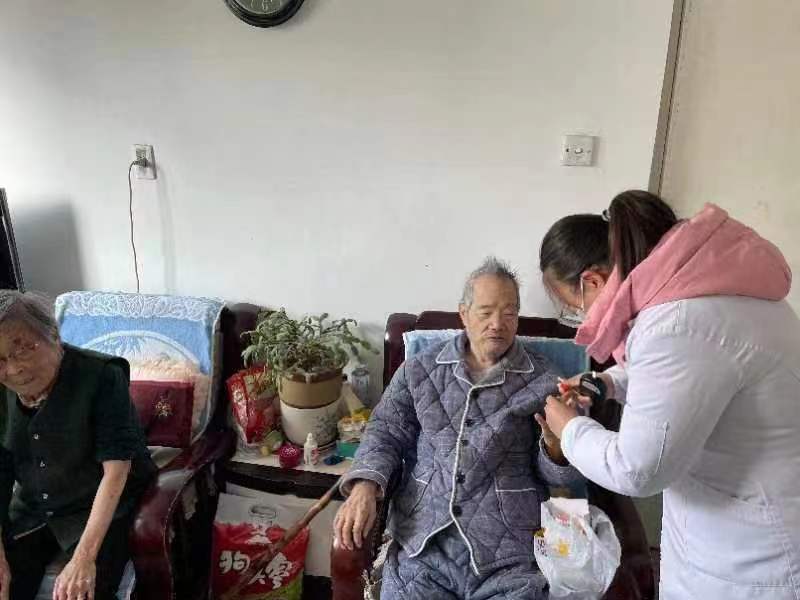 内分泌代谢科医护人员马俊辉和徐慧婷在朝阳街道祁连路西社区支部梁书记和李书记的带领下一行6人,带着有关检查设备、健康教育宣传资料,去社区老党员家中进行义诊活动。社区工作人员亲切慰问了辖区内的高龄老党员,询问生活环境、身体状况,并给予生活上的帮助。医务人员认真为老人量血压、血糖,为他们检查病情并详细询问老人们的身体状况,耐心细致地分析病情,讲解卫生保健知识、注意事项、饮食安全、合理用药等健康常识,认真解答老年人关于常见病、多发病的预防诊治及愈后疑难问题。