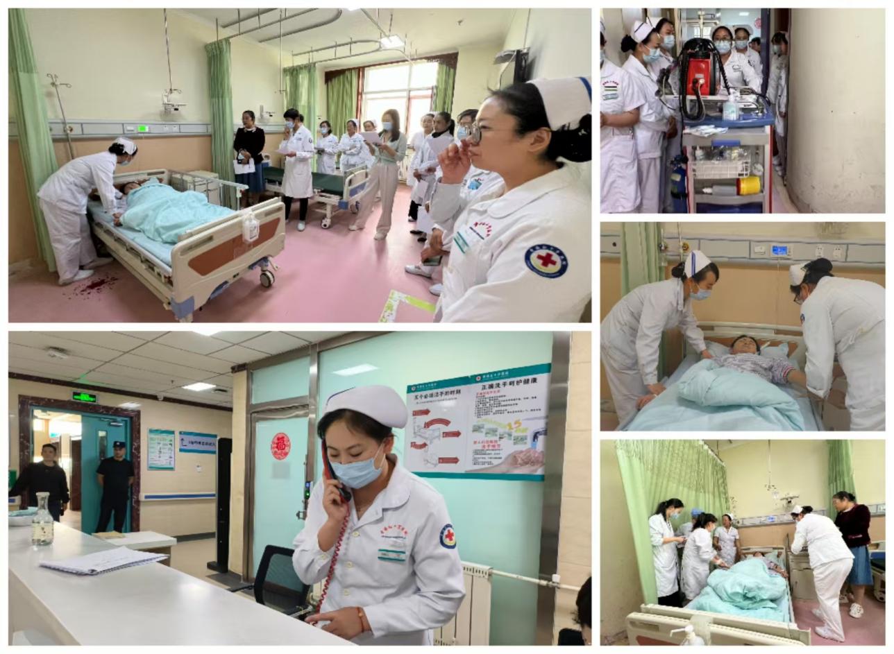 为进一步加强患者安全管理,增强医护人员安全及防范意识,提高应对患者突发意外事件的处置能力,青海红十字医院乳腺科于6月7日15:30在乳腺科病房高护病房开展了患者自杀应急预案的模拟演练。特邀请院长助理、护理部主任潘丽杰;护理部副主任李忠、王俊林、李月琴;外科大护士长净卫娟、危重大科护士长马青云、手术室大科护士长王玉琴、护士长祁连慧及外科系列各科室护士长和骨干及乳腺科全体医护人员观摩应急演练。在乳腺科护士长付明桂的精心组织下,本次演练涵盖了三个关键环节:识别患者自杀行为、迅速展开救援;进行全面评估并与患者家属进行有效沟通;以及在紧急情况下对患者家属进行心理慰藉和确保医疗记录的完整性。