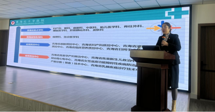 其次,我院护理部主任潘丽杰详细介绍了我院建院以来的发展历程。医院秉承“红十字让生命更健康”的服务理念,致力于为青海省人民群众提供优质的医疗服务。随着时间的推移,医院医疗技术不断发展,医疗设施迭代更新,各个科室在专业领域取得了一定成就,拥有一批高水平的医疗团队,为患者提供了全面、安全、专业的医疗服务。医院的发展历程不仅是医疗技术的进步史,更是其服务理念和人文关怀的体现。