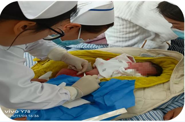 11月的青南草原玉树州称多县,寒意渐浓。在县医院,一名出生于牧民家庭的1日龄宝宝被紧急送来,情况令人揪心:家人用剪刀剪断脐带,用麻绳随意绑扎,全程未消毒。入院时,婴儿脐带红肿明显,会阴与臀部被粪便糊满,健康岌岌可危。就在关键时刻,青南支医队员、助产师李雯雯迅速行动,用专业筑起守护屏障。面对棘手的护理难题,她先按“一洗二擦三护”流程精细化护理臀部:温开水轻柔冲净污渍,柔软棉巾蘸干水分避免摩擦损伤,再均匀涂抹护臀膏形成保护膜,还根据宝宝皮肤状况灵活调整尿布更换频率;随后用碘伏仔细消毒脐带根部及周围皮肤,动作轻柔防牵拉,密切观察残端有无渗液、异味,详细记录护理情况,全力以赴阻断感染风险。