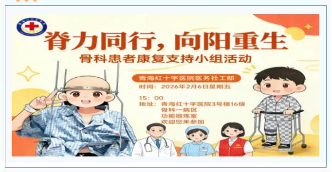 为切实关注骨科患者术后身心康复需求,搭建医患沟通与同伴支持的桥梁,2026年2月6日,我院医务社工部在骨科成功举办康复小组活动。活动特邀阿尖措院长、院长助理苏伟、潘立杰现场指导,以“身心兼顾、医患协同”为核心,通过多维度互动环节,为患者及家属带来了一场兼具专业性与温度的康复体验,赢得现场一致好评。