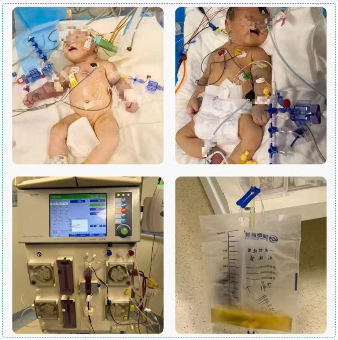 患儿出生后即出现持续严重代谢性酸中毒、全身水肿、无尿、严重贫血,同时合并肾功能衰竭、心功能衰竭、呼吸功能衰竭及 DIC,处于休克状态,病情极其危重,死亡率极高。