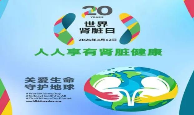 3月12日是世界肾脏日。该节日由国际肾脏病学会和国际肾脏基金会联合会 (世界肾脏联盟)联合设立,主题为 “人人享有肾脏健康:关爱生命,守护地球”,兼顾个体肾脏健康诊治与医疗活动的环境影响,追求人地和谐与可持续发展。