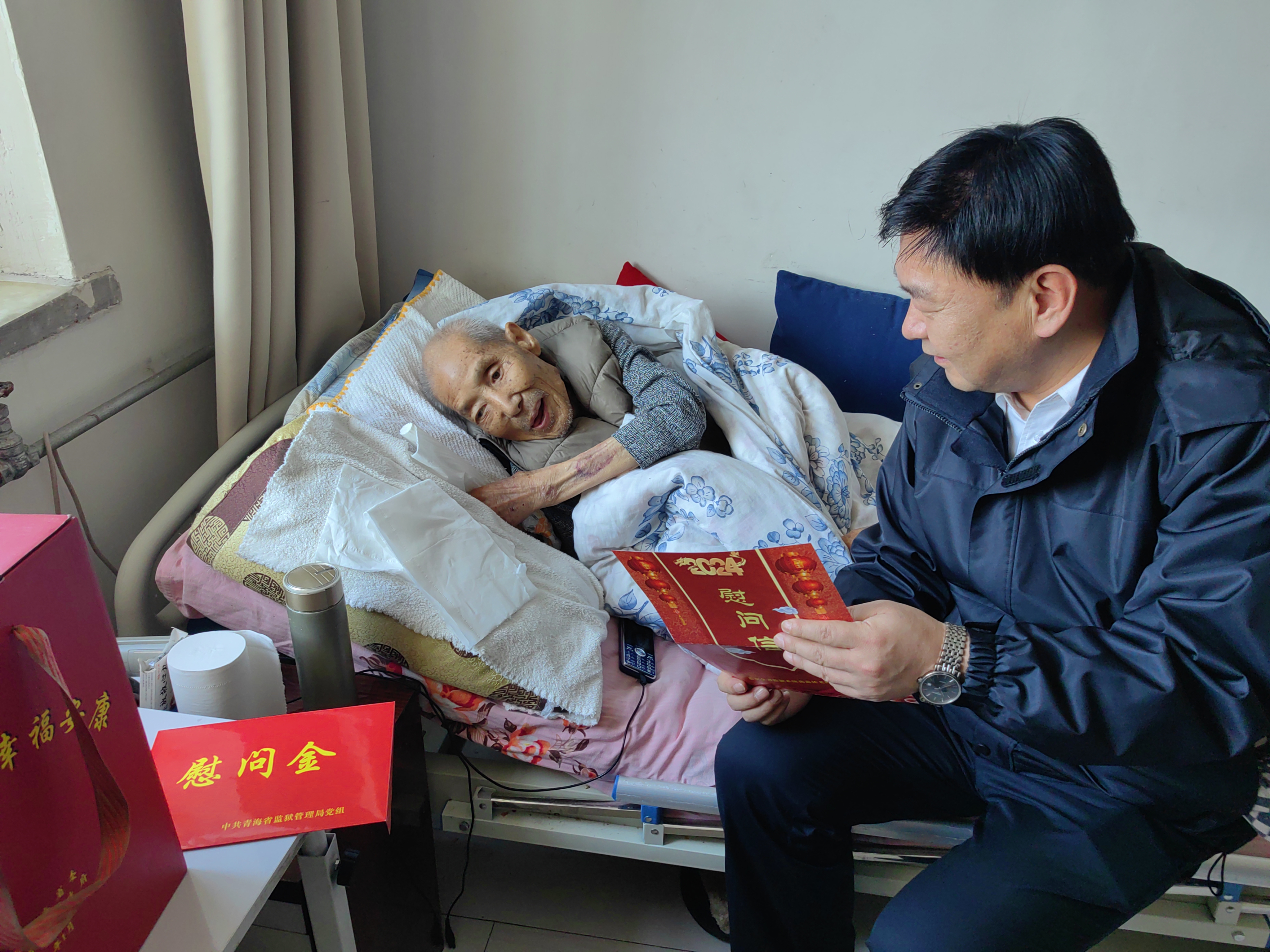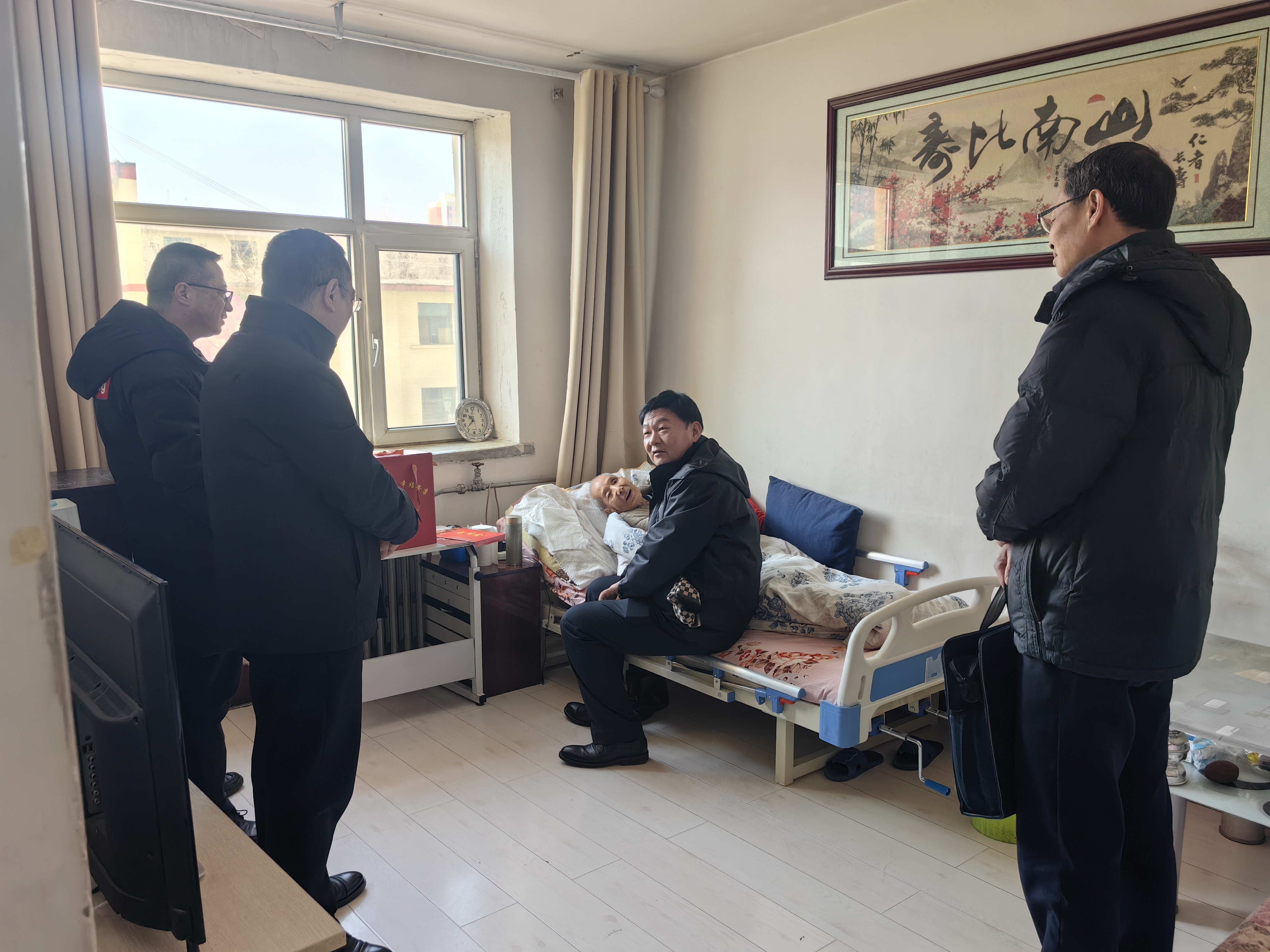 李彦明一行来到离休干部刘富德家中,与其促膝而坐,亲切交谈,详细询问他的身体状况及生活情况,鼓励他一如既往地保持乐观的心态,照顾好自己的身体,早日康复,将慰问金亲手送到他的手中,并转达了局党组对他的慰问和新春祝福。离休干部刘富德激动的说,看到局领导来看望,我非常感激,也很感动,非常感谢局领导,感谢院党委的关心关爱,待我康复后我将继续关注和支持监狱和医院的发展。