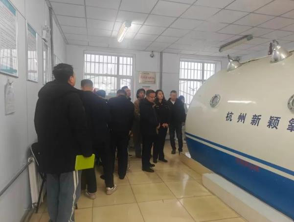 随后,调研组一行实地深入医院高压氧舱区域,重点查看设备运行状态、日常维护保养记录、安全管理制度上墙及落实情况,详细询问设备操作流程、作业人员持证上岗、安全警示设置及应急处置预案制定与演练等关键工作开展情况,针对现场发现的细节问题进行专业指导。