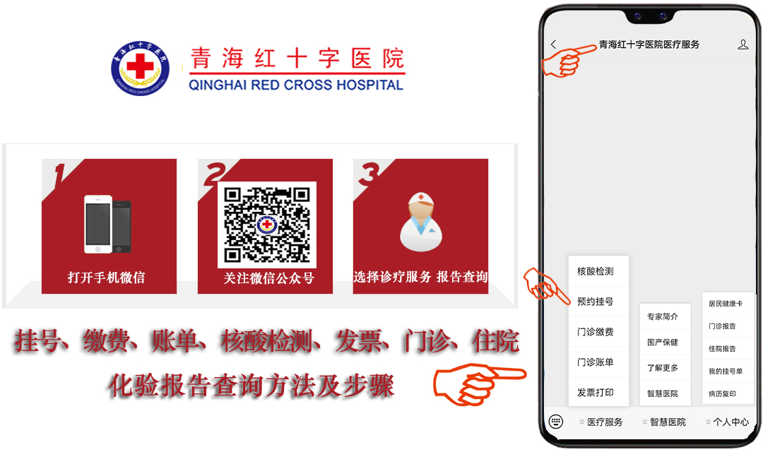 医院挂号、住院、门诊、缴费、发票、化验报告查询步骤: