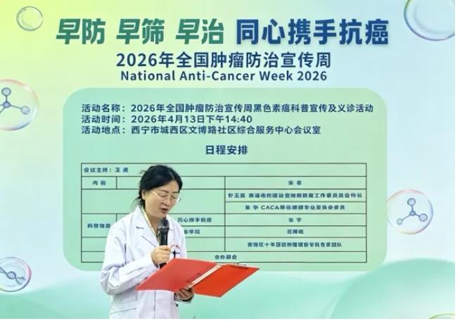 春临高原,爱意盈怀。在这充满生机与希望的美好季节,一年一度的肿瘤防治宣传周在全国拉开了帷幕,今年是第32届全国肿瘤防治宣传周。4月13日,由中国抗癌协会(CACA)黑色素瘤专业委员会主办,携手青海红十字医院在青海省西宁市开展了“关于癌症早防早筛早治、黑色素瘤科普宣传及义诊”活动,传播科学防癌抗癌知识,提高公众对癌症、黑色素瘤的认识度,引导全社会树立正确的抗癌理念,凝聚政府、医疗机构、家庭及个人的多方力量,共同筑牢全民健康防线,全力遏制癌症危害。