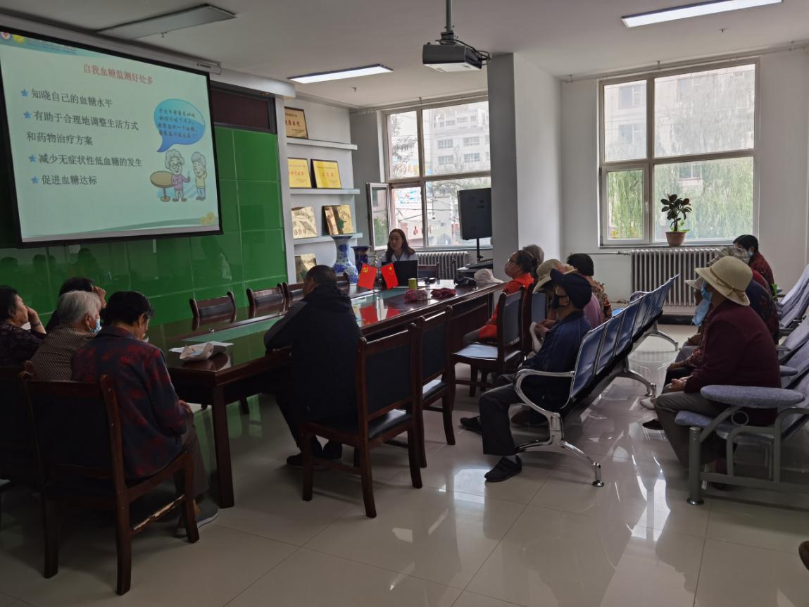 首先,由内科总护士长王俊林进行了“胸痛的初步识别”的宣讲;随后,由呼吸科护士长吕春秀为呼吸道慢病患者进行了“呼吸操”的讲解与演示,肿瘤内科郭生梅护士长为社区肿瘤患者及家属讲解了“PICC管的家庭护理与维护”;最后,由全科医学科护士长李正娥为糖尿病患者进行了“血糖规范监测”的健康宣教。