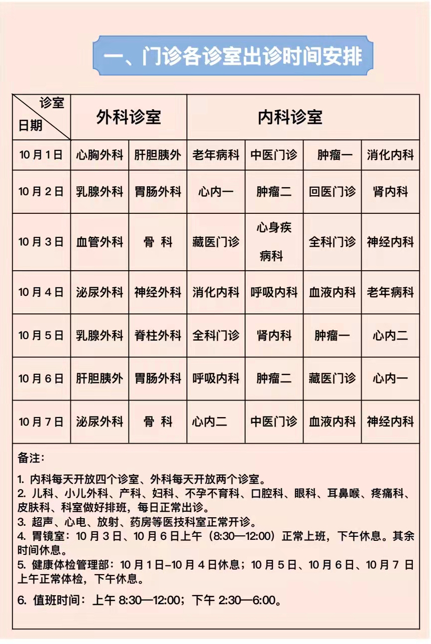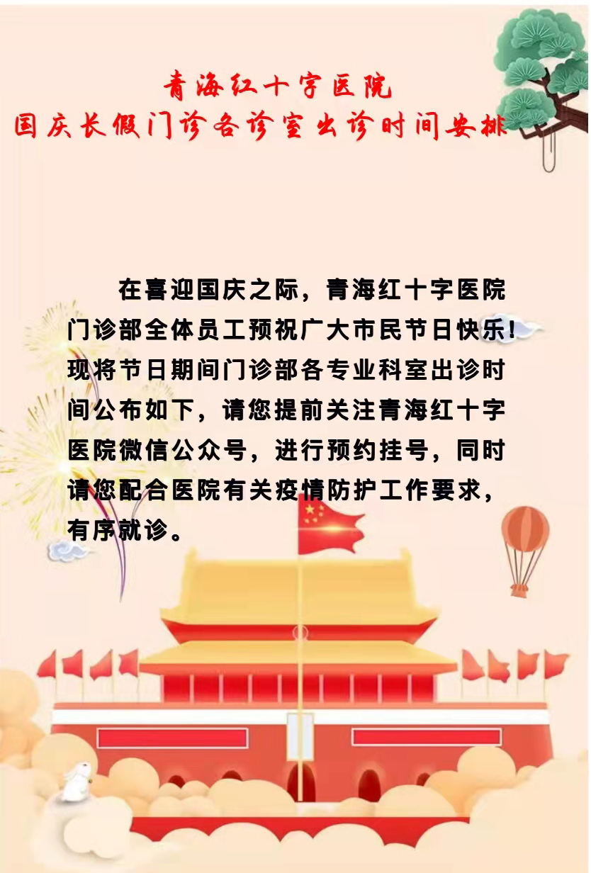 青海红十字医院国庆长假门诊各诊室出诊时间安排