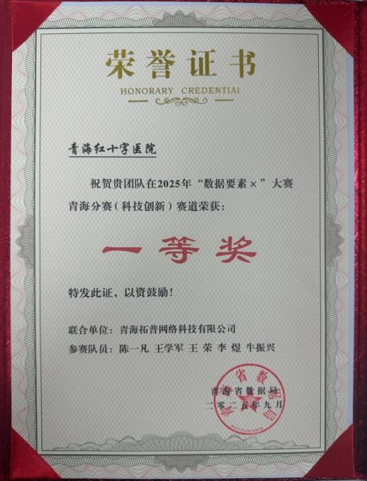 在2025年“数据要素×”大赛青海分赛中,青海红十字医院麻醉科王学军团队凭借卓越的科技创新能力和对数据要素价值的深度挖掘,荣获科技创新赛道一等奖,展现了医院在数据要素创新应用领域的强大实力。