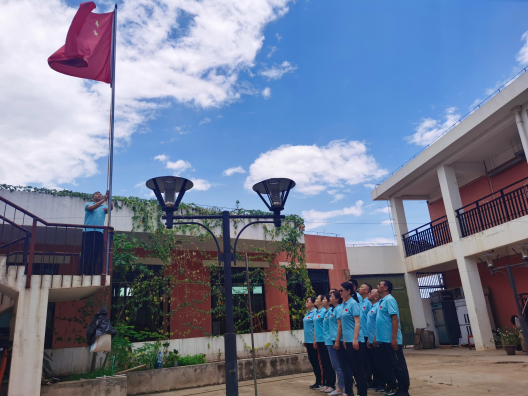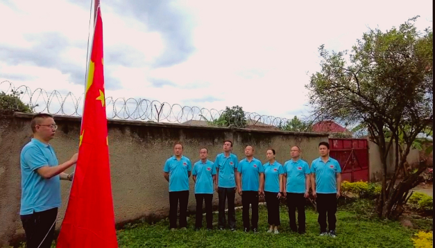 清晨6时,当布隆迪的第一缕阳光从地平线升起,伴随着《义勇军进行曲》的响起,中华人民共和国五星红旗分别在青海省第二十批援布隆迪医疗队的三所驻地医院同时升起,全体队员列队高唱国歌、行注目礼。